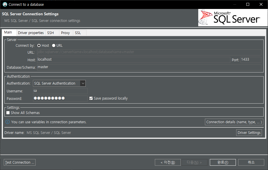 여기까지 MS SQL Server Express의 설치를 완료하고, DBeaver에서 연결을 해보았습니다.