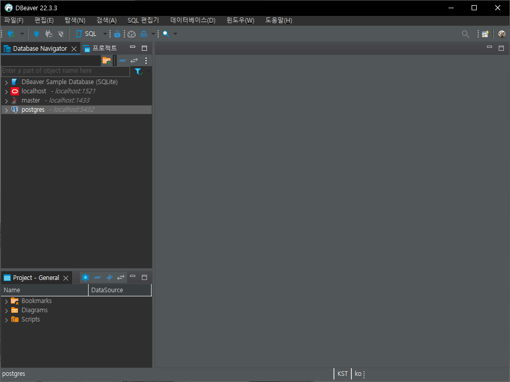이제 DBeaver에서 PostgreSQL에 연결해보겠습니다.