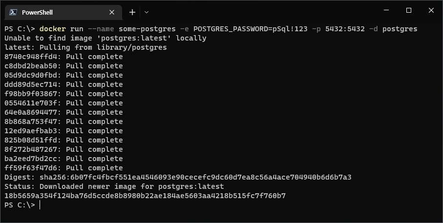 docker run --name some-postgres -e POSTGRES_PASSWORD=pSql!123 -p 5432:5432 -d postgres
