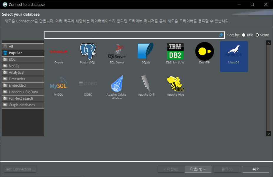 이왕 DB 설치를 시작해본 김에 유명하고 자주 사용되는 DB들을 모두 설치하고,