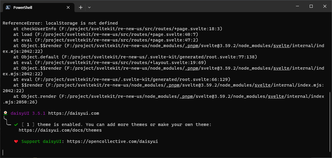 sveltekit / 500 Internal Error, ReferenceError: localStorage is not defined 해결 방법