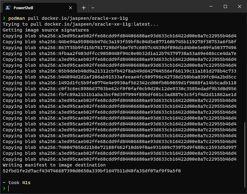 podman pull docker.io/jaspeen/oracle-xe-11g