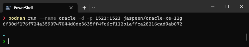podman run --name oracle -d -p 1521:1521 jaspeen/oracle-xe-11g