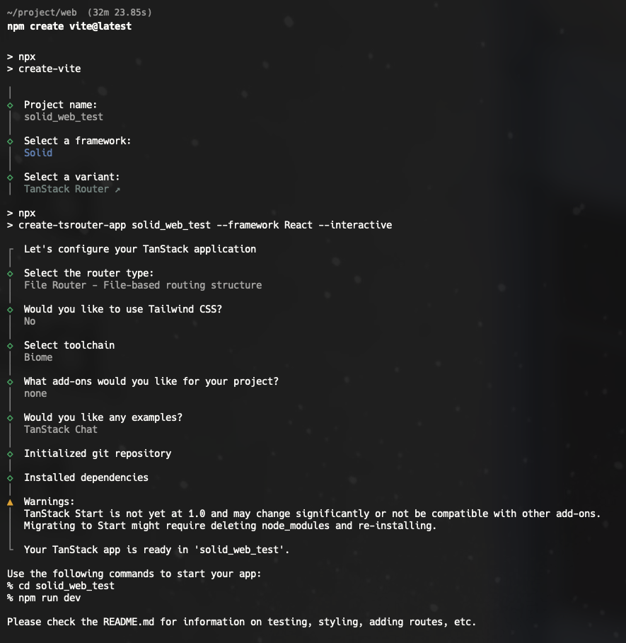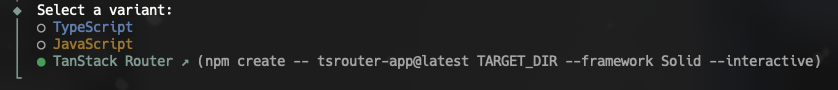 즉, 이 명령어는 Solid 프레임워크용 TanStack Router 기본 앱을 자동으로 설정하는 스크립트라 볼 수 있습니다. Solid 개발 환경에서 TanStack Router를 쉽게 시작할 때 사용합니다.