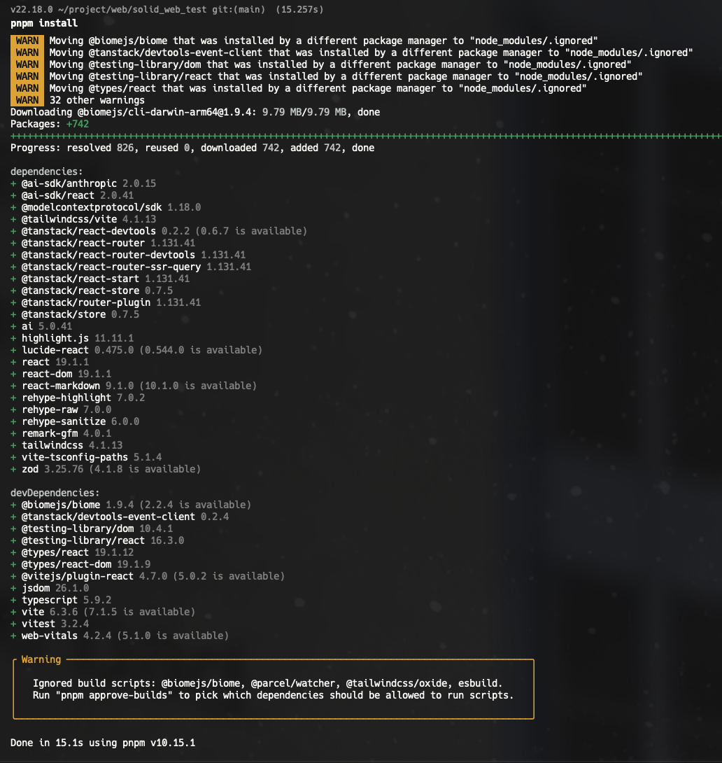 - Biome: 코드 포맷팅과 정적 분석 기능을 제공하는 도구로, JavaScript 및 TypeScript 코드의 스타일과 품질을 관리합니다. ESLint와 비슷한 역할을 수행하지만 좀 더 통합된 환경을 제공합니다.