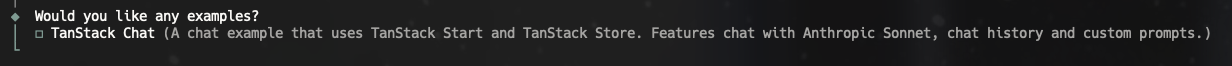 example에서 TanStack Chat을 선택하면서 그 전의 선택들이 무색하게 되어버렸네요.
