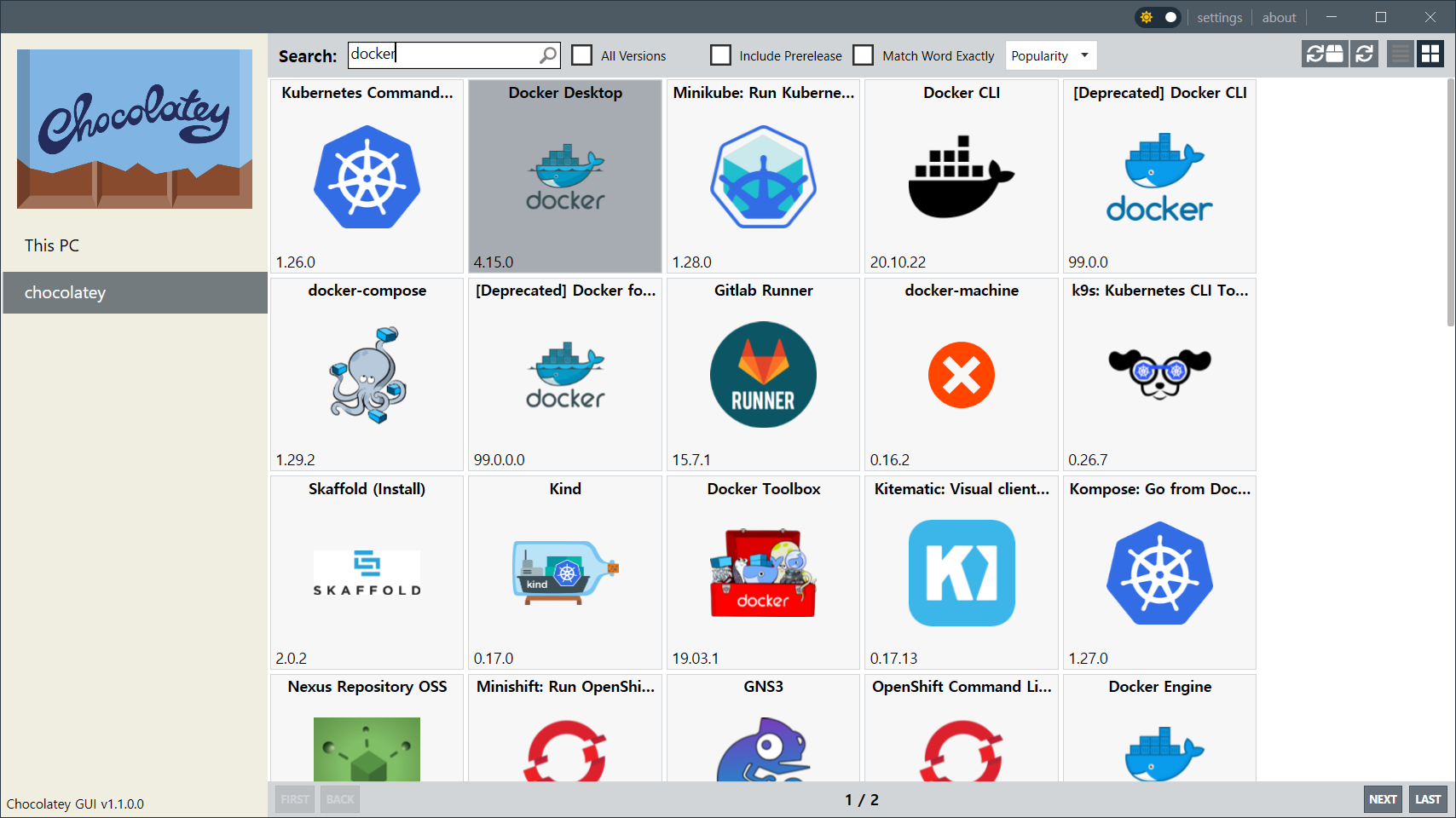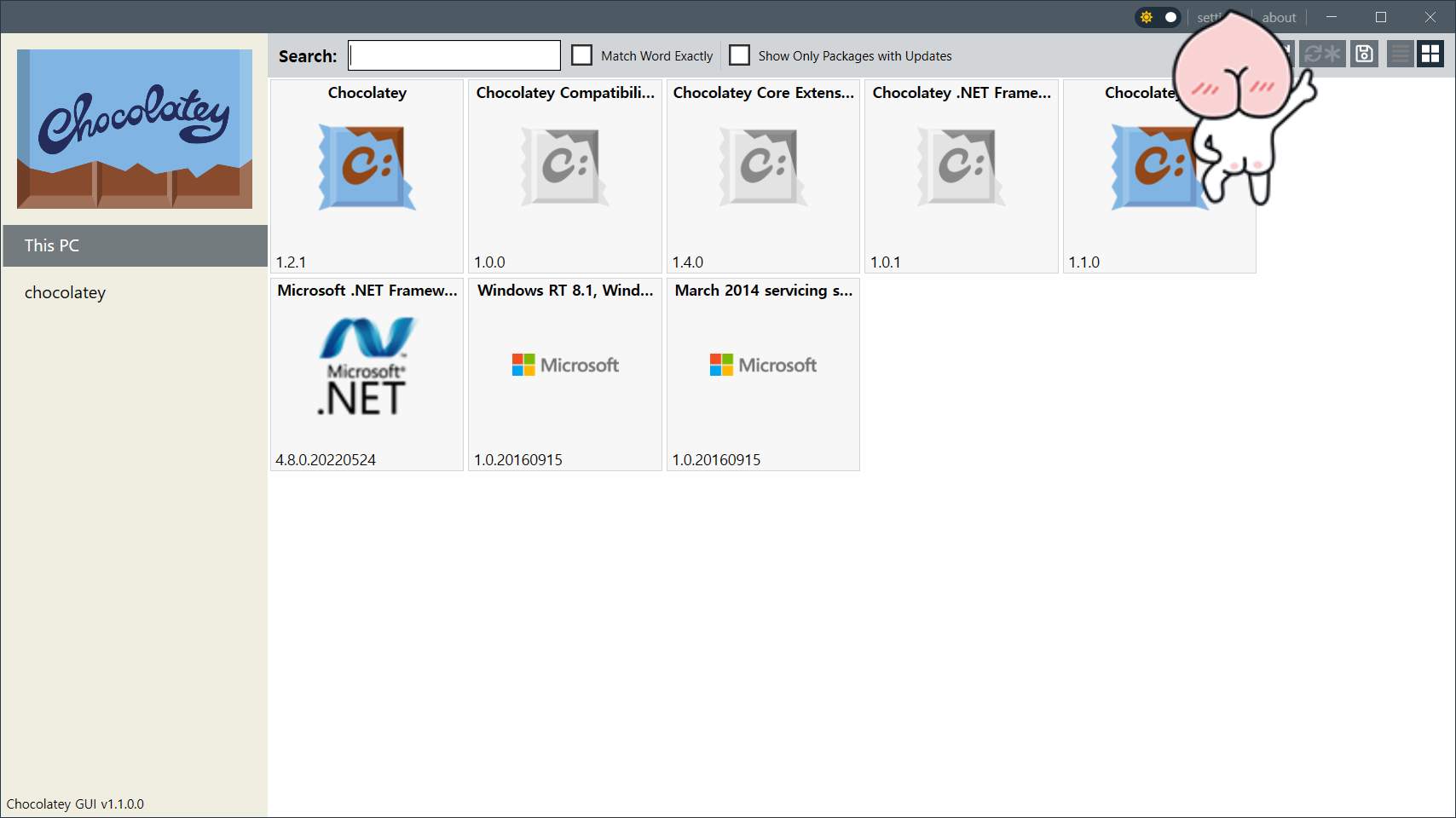 아래는 Chocolatey GUI 설치가 완료된 화면입니다.