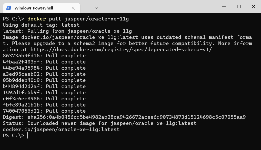docker run --name oracle -d -p 1521:1521 jaspeen/oracle-xe-11g