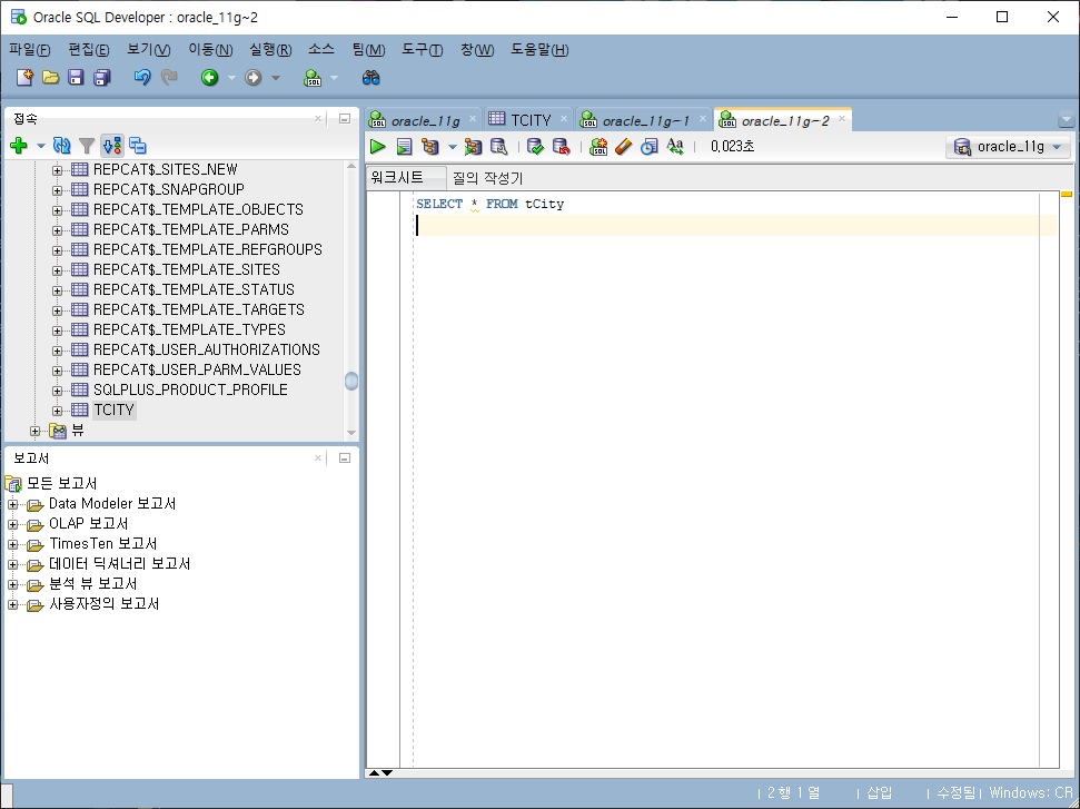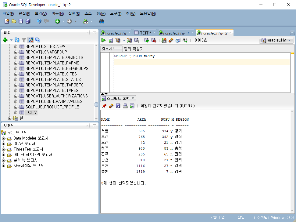 6. 화면 좌측의 테이블 목록에서 TCITY를 클릭하시면 아래와 같은 화면이 나옵니다.