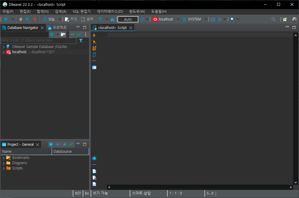 7. SQL 스크립트를 입력하실 수 있는 창이 나왔습니다.