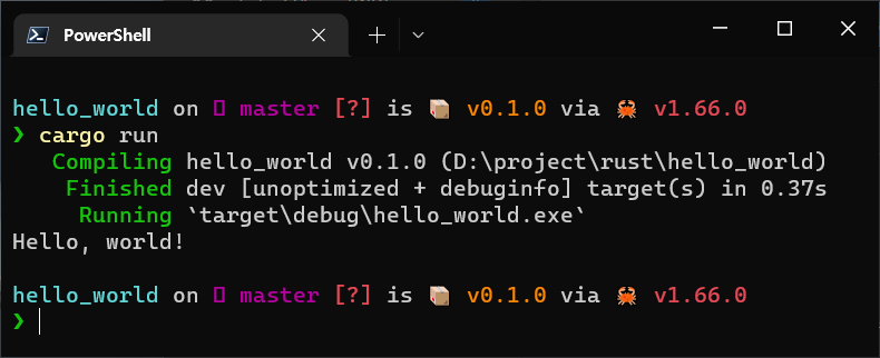 프로젝트 생성만 했지만 이미 "Hello, world!"가 있습니다.